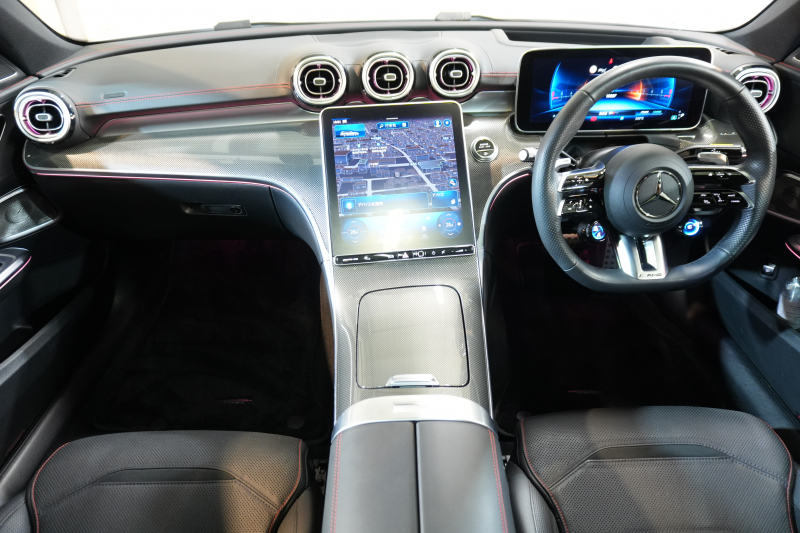AMG Cクラス C43 4MATIC ステーションワゴン レーダーSP BSG搭載 黒革 パノラマSR MBUXナビ ブルメスター HUD 360カメラ 自動Rゲート&ハンズフリーA AMGサスペンション AMGリアルパフォーマンスサウンド AMGナイトPKG AMGエアロ&19インチAW 2年保証付