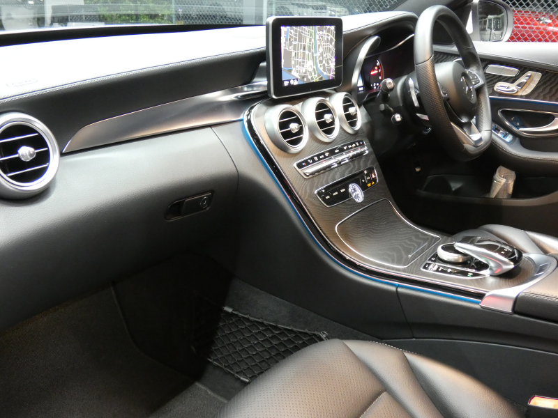 メルセデスベンツ Cクラス C200 AVG AMGライン ベーシック&レーダーセーフティPKG キーレスゴー 黒革シート/ヒーター HDDナビ 地デジ Bカメラ パークトロニック パドルシフト トランクスルー LEDライト/自動ハイビーム AMGエアロ/AMG18AW 2年保証付