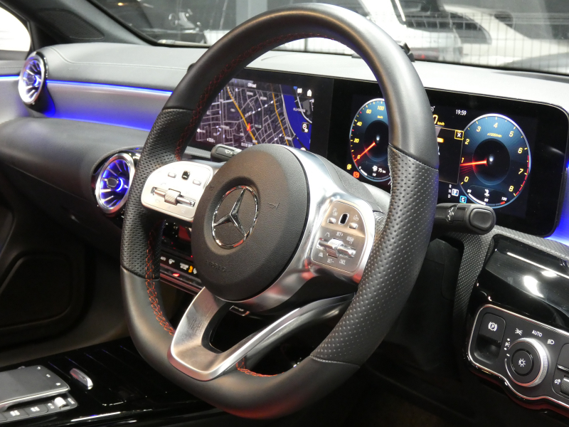 メルセデスベンツ Aクラス A180 AMGライン&AMGレザーエクスクルーシブ&アドバンスド&ナビ&レーダーセーフティPKG meコネクト AMGエアロ/19インチAW 赤黒革/ヒーター パノラマサンルーフ 純正ドラレコ ヘッドアップD ワイヤレスチャージ ダイナミックセレクト LEDライト/自動HB 2年保証付