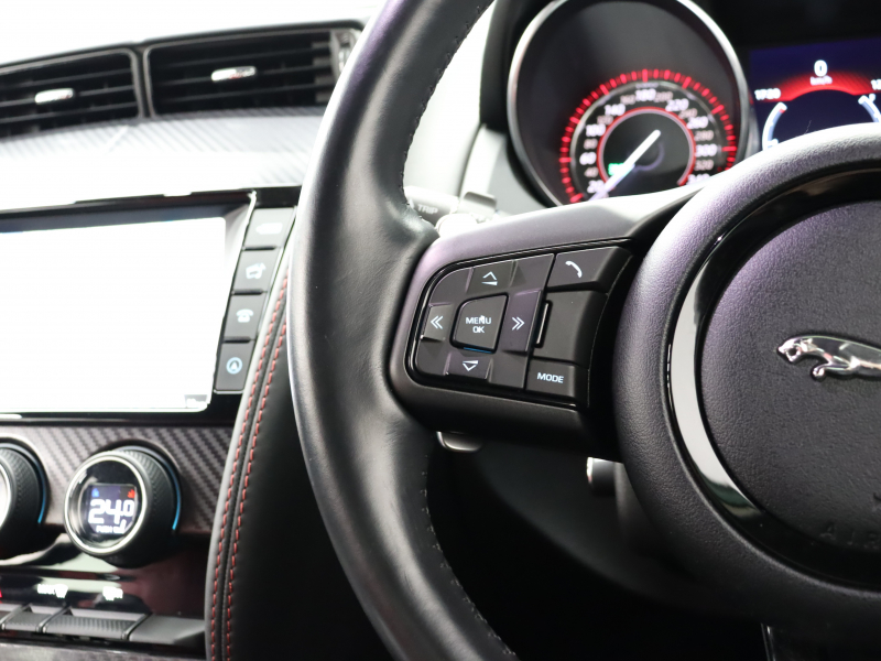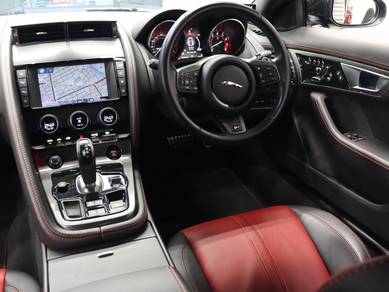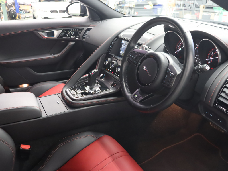 ジャガー Fタイプ Rクーペ 赤/黒革 パフォーマンスシート シートヒーター 純正ナビ バックカメラ クルコン MERIDIANサウンド 自動Rゲート ステアリングヒーター カーボンセンターコンソール 可変バルブ 可変ウィング パフォーマンスエグゾースト 純正20インチAW 2年保証