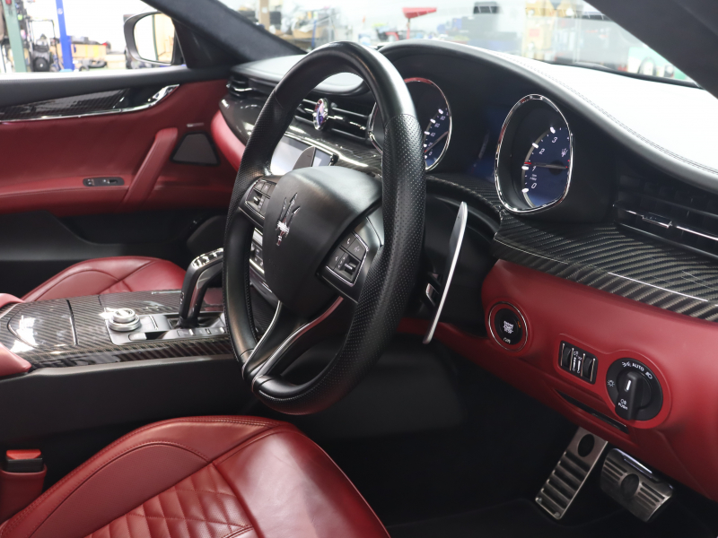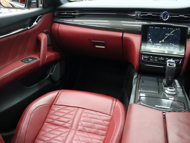 マセラティ クアトロポルテ S グランスポーツ 後期 赤革 ベンチレーター ヒーター サンルーフ ナビTV 360カメラ Bowers&Wilkineサウンド ACC トライデントステッチ 自動Rゲート&ハンズフリーA スカイフックサスペンション カーボンインテリアトリム レッドキャリパー 純正21インチAW(アトランテ) 2年保証付