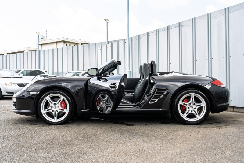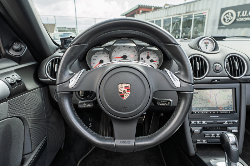 ポルシェ ボクスター S スポーツクロノPKG 後期モデル ブラックハーフレザーシート シートヒーター ブラックソフトトップ クラリオンナビTV ダイナミックコーナリングライト クルコン オートエアコン ケイマンS18インチAW 2年保証