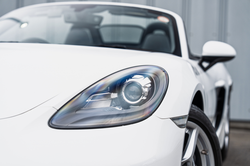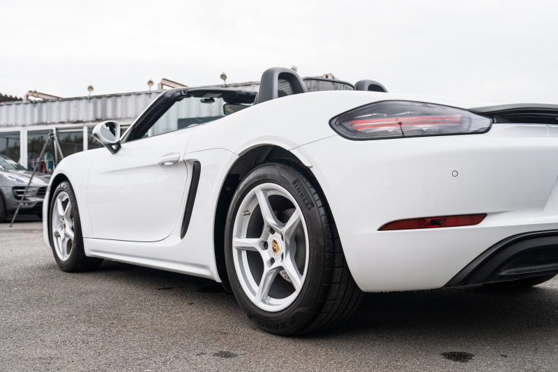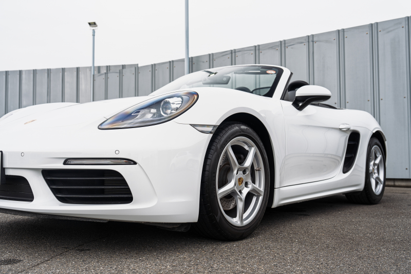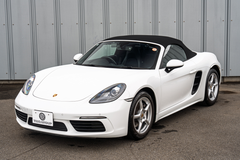 ポルシェ 718 ボクスター ベースグレード スポーツクロノPKG ブラックハーフレザーシート シートヒーター ブラックソフトトップ PCMナビ CarPlay キセノン オートエアコン TPM パークアシスト 電格ミラー ボクスター18インチAW 2年保証