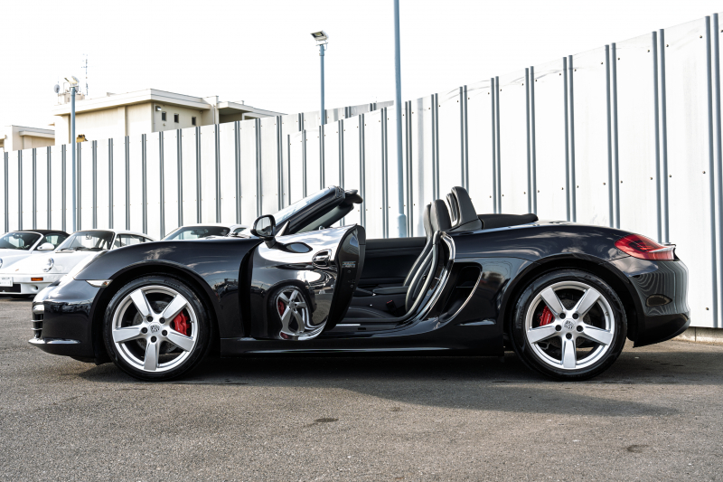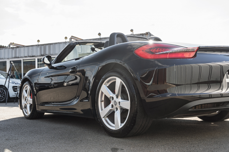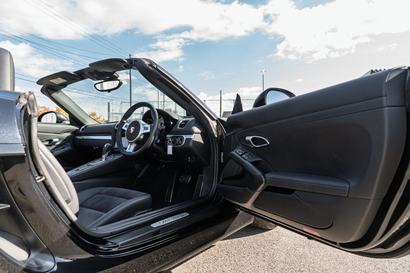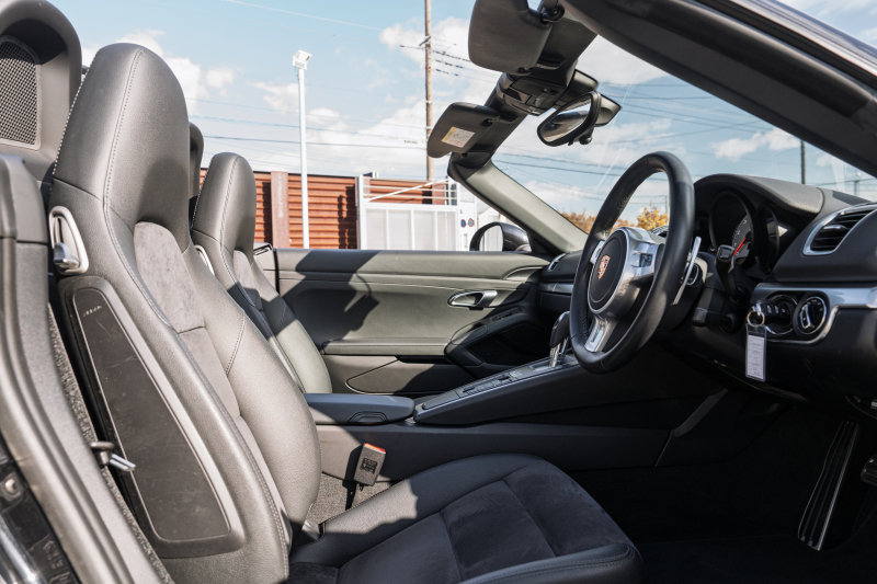 ポルシェ ボクスター(Type981) S スポーツクロノPKG 2015年モデル ブラックハーフレザーシート シートヒーター ブラックソフトトップ クラリオンナビ フルセグTV スポーツデザインステア 電動Dミラー オートエアコン TPM ケイマンS19インチAW 2年保証