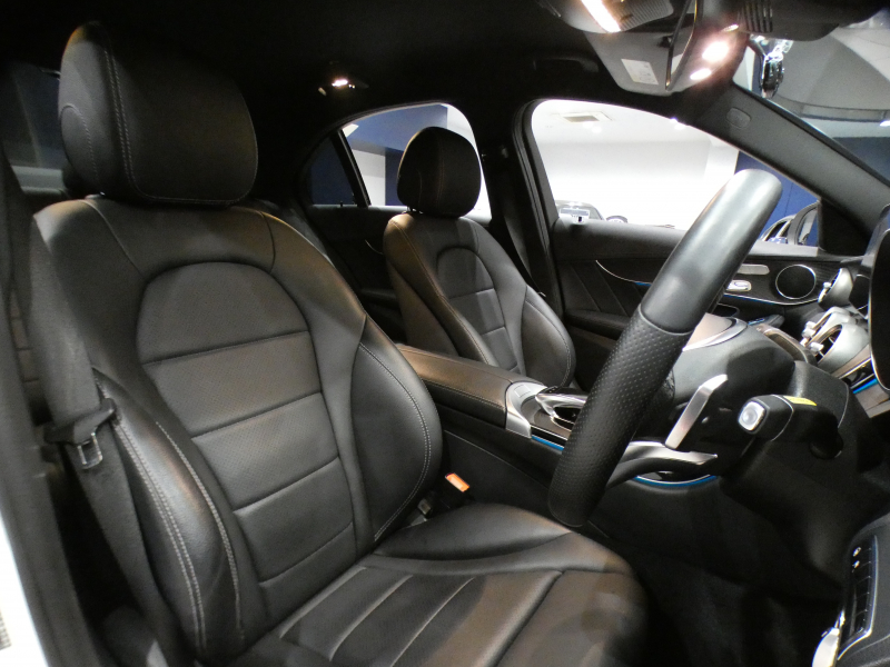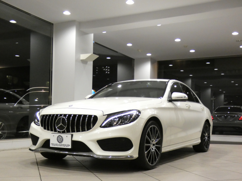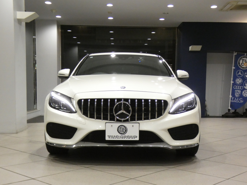 メルセデスベンツ Cクラス C250スポーツ レーダーセーフティPKG キーレスゴー ☆有償色 黒革 ヒーター ナビTV Bカメラ PTS LEDライト アンビエントライト パナメリカーナグリル トランクスポイラー AMGスタイリング&19AW 2年保証