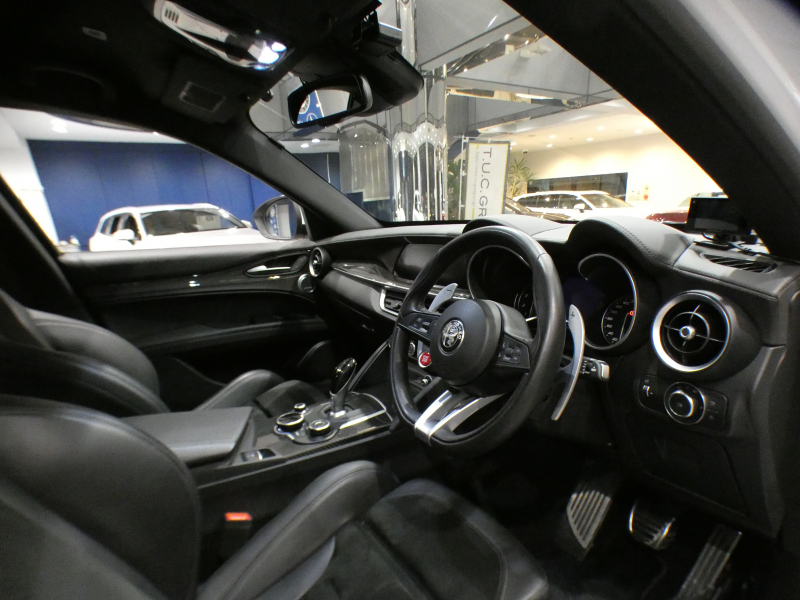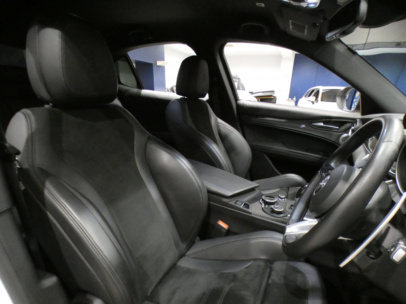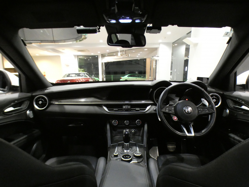 アルファロメオ ステルヴィオ ステルヴイオ V6ビターボ クアドリフォリオ 追ACC レーンディパーチャー&ブラインドスポット 黒半革 ヒーター ステアヒーター Connectシステム アンドロイドオート harman/Kardon Bカメラ キセノン 専用エクステリア&20AW ダウンサス EBM 可変マフラー 510ps 2年保証