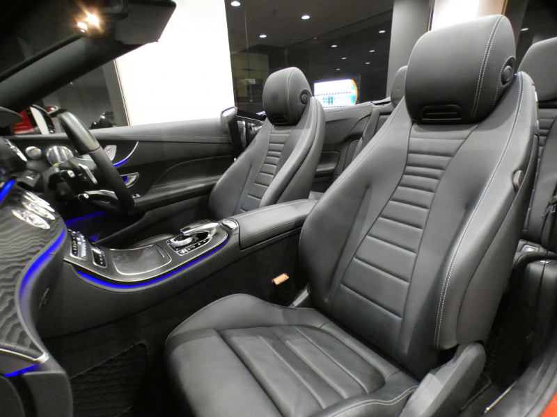 メルセデスベンツ Eクラス E200カブリオレ スポーツ レザー&レーダーセーフティPKG 黒革/黒幌 ヒーター&エアスカーフ ナビTV ☆ブルメスター 全周囲カメラ PTS エアバランス マルチビームLED アンビエントライト AMGスタイリング&19AW 2年保証