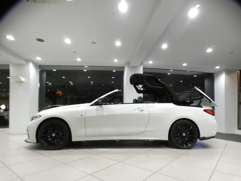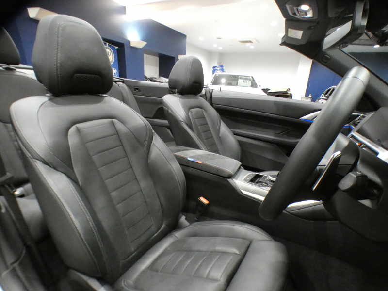 BMW 4シリーズ 420iカブリオレ Mスポーツ ファストトラックPKG コンフォA Dアシスト 追ACC レーンCHW 衝突軽減 黒革/黒幌 ヒーター ☆ベンチレーター エアカラー iドライブナビ(第7世代) ワイヤレスCH 全周囲カメラ PDC LEDライト Mスポーツエクステリア&19AW Fリップ&サイドリップ 2年保証