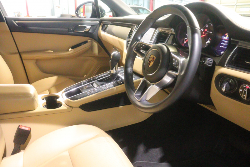 ポルシェ マカン ツートーンレザーインテリア(ベージュ/ブラック) ベージュレザーシート シートヒーター PCMナビ Bluetooth バック/サイドカメラ 8way電動シート レーンディパーチャウォーニング キセノンヘッドライト 19インチマカンターボAW 2年保証
