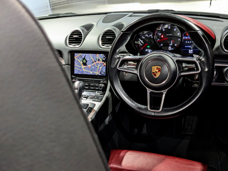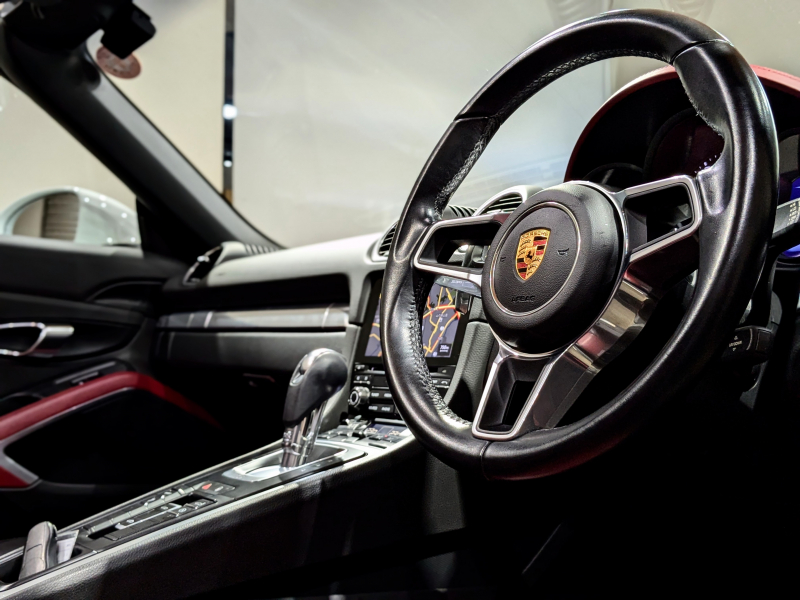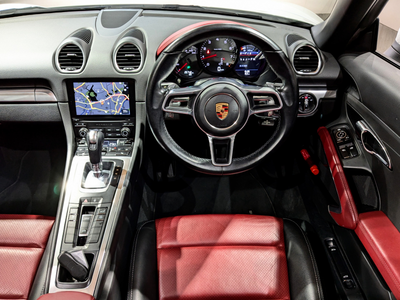 ポルシェ 718 ボクスター 2.0 PDK レザーインテリアPKG シートヒーター PCMナビ リアカメラ フルセグTV 赤幌 電動格納ドアミラー キセノンヘッドライト エントリードライブシステム