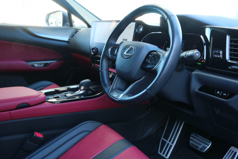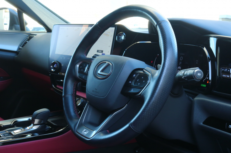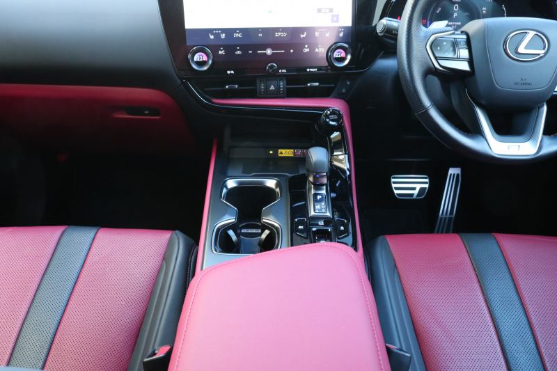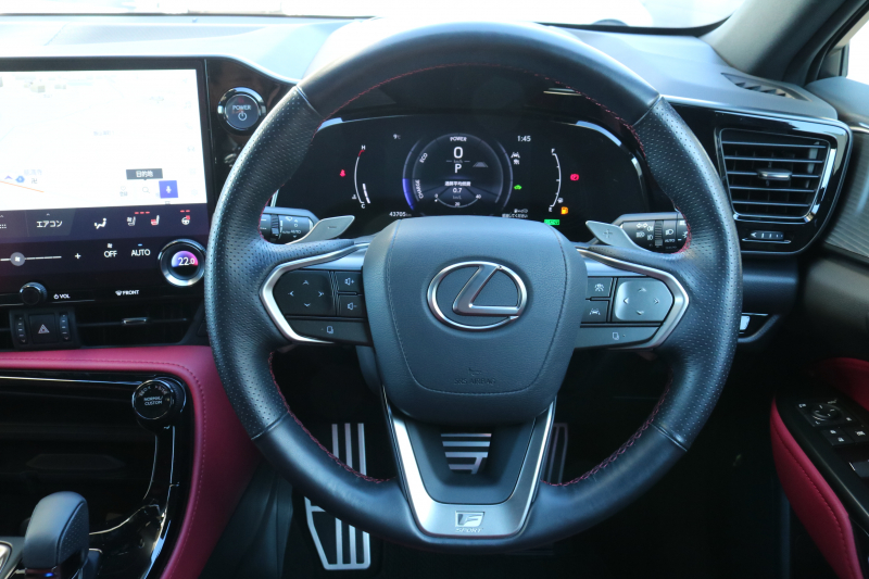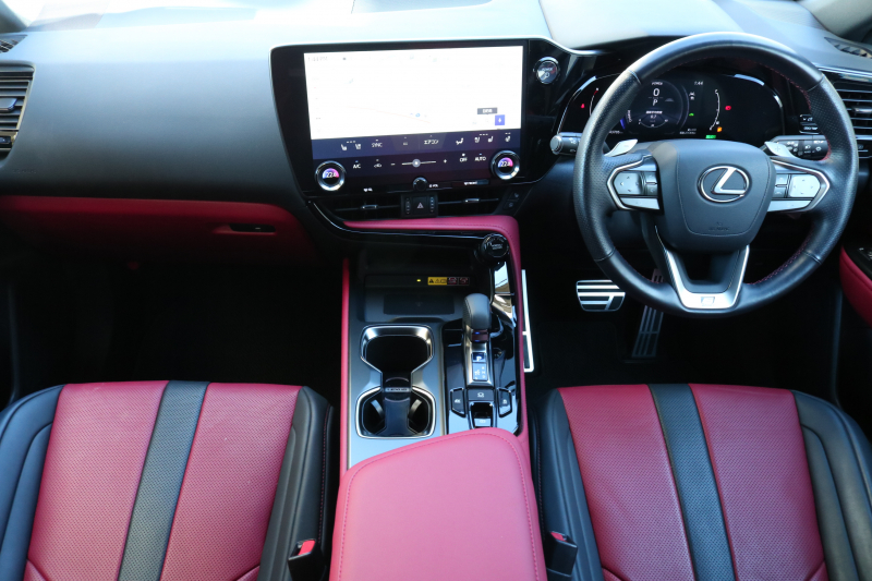 レクサス NX NX350h Fスポーツ 1オーナー レクサスセーフティシステム+ BSM パノラマR フレアレッド革シート シートヒーター ベンチレーション 14インチディスプレイオーディオ パノラミックビューモニター 3眼LED おくだけ充電 オレンジキャリパー FSPORT専用20AW 2年保証