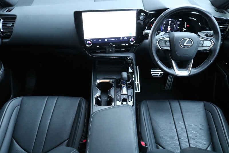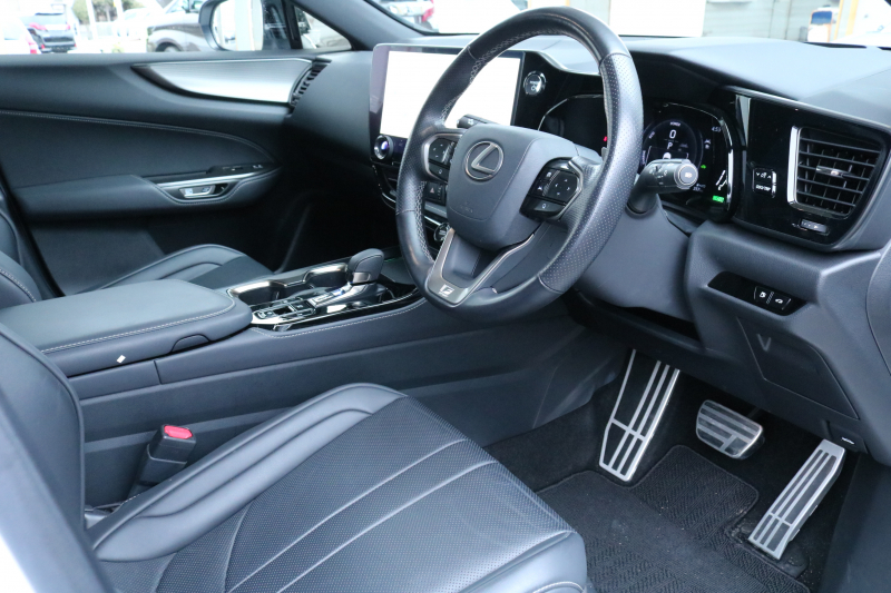 レクサス NX NX350h Fスポーツ TRD レクサスセーフティシステム+ BSM パノラマルーフ ブラック本革シート 3眼LED オレンジキャリパー パノラミックビューモニター カラーヘッドアップディスプレイ Lexus Teammate Advanced Park 2年保証