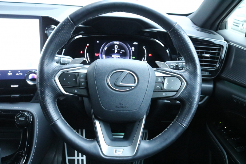 ★F SPORT”専用ディンプル本革ステアリング(パドルシフト付)