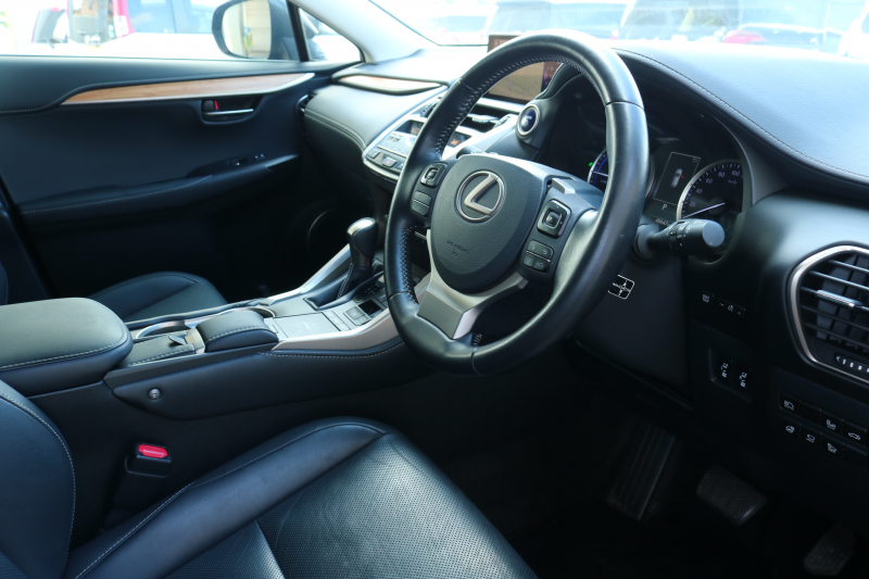 レクサス NX NX300h バージョンL モデリスタフルエアロ 1オーナー BSM レクサスセーフティシステム+ 黒革シート シートヒーター ステアリングヒーター 純正ナビTV 3眼LEDヘッドライト LEDシーケンシャルターンシグナルランプパワーバックドア 純正18AW 2年保証