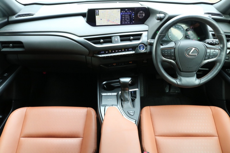 レクサス UX UX250h バージョンC レクサスセーフティシステム+ パノラミックビューモニター ブラインドスポットモニター パーキングサポートブレーキ パワーシート シートヒーター 純正ナビTV LEDヘッドライト ステアリングヒーター 純正17AW 2年保証