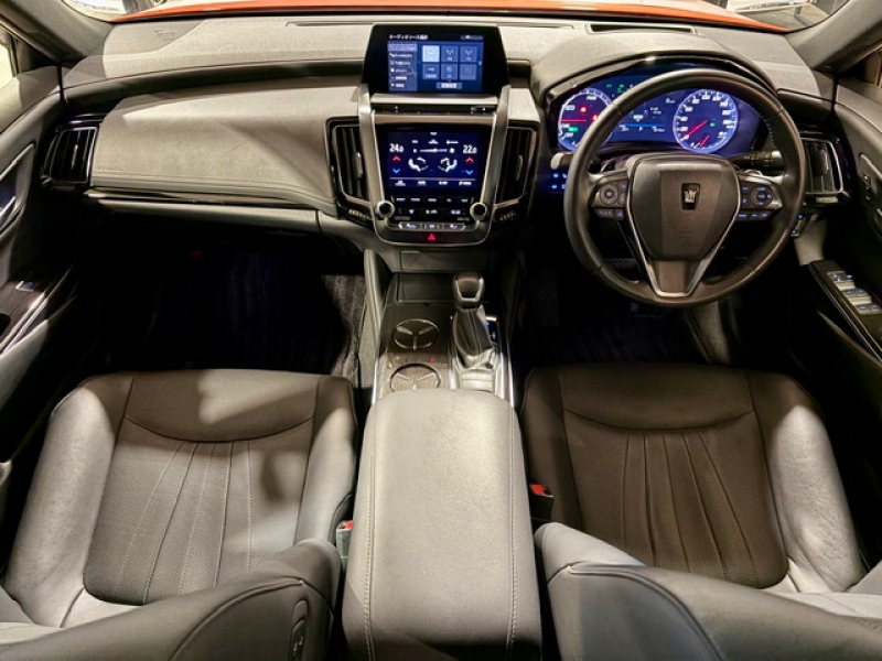 トヨタ クラウンハイブリッド G ジャパンカラー・セレクションパッケージ OP5年保証対象 本革シート 純正ナビ(Bluetooth/フルセグ/DVD/CD/USB/AUX) 全方位カメラ トヨタセーフティーセンス BSM HUD