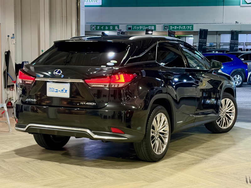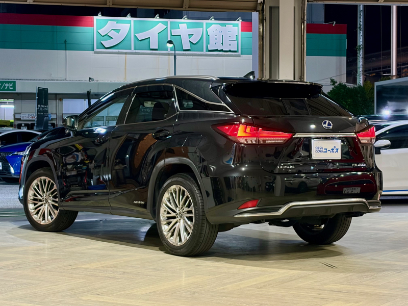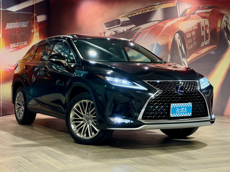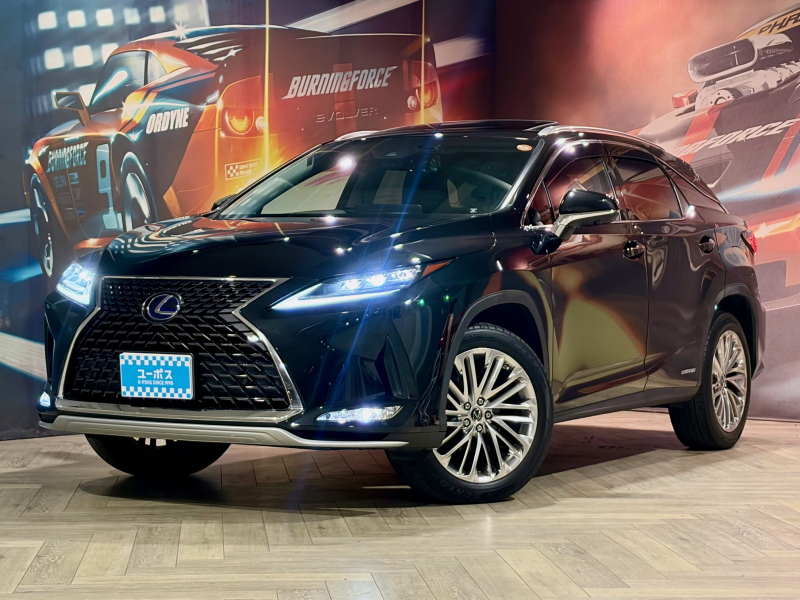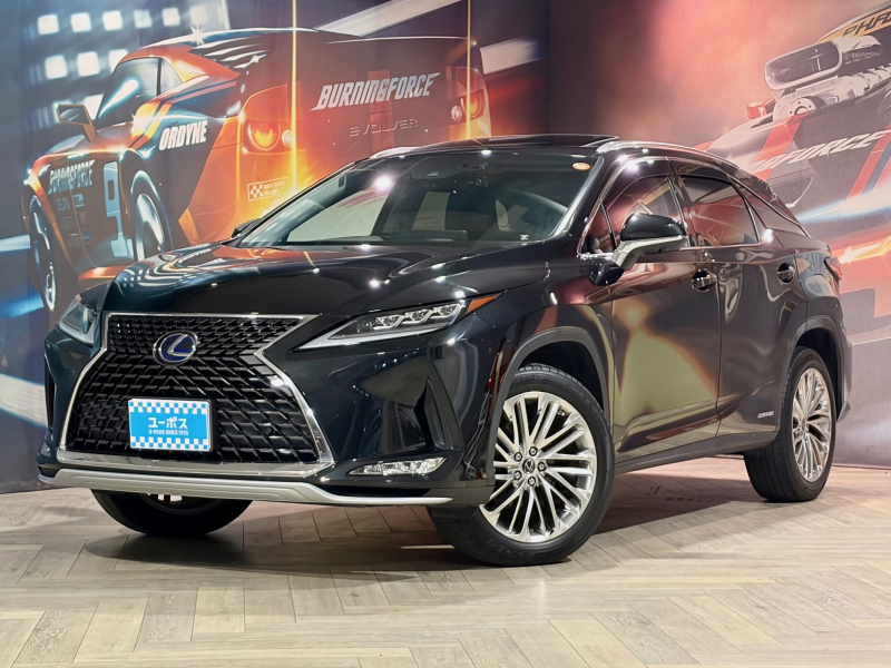 レクサス RXハイブリッド 450h サンルーフ OP三眼LEDヘッドライト OP純正20インチアルミホイール 10年保証対象車 純正ナビ(フルセグTV/CD/DVD/Bluetooth/USB/AUX)パワーバックドア BSM HUD