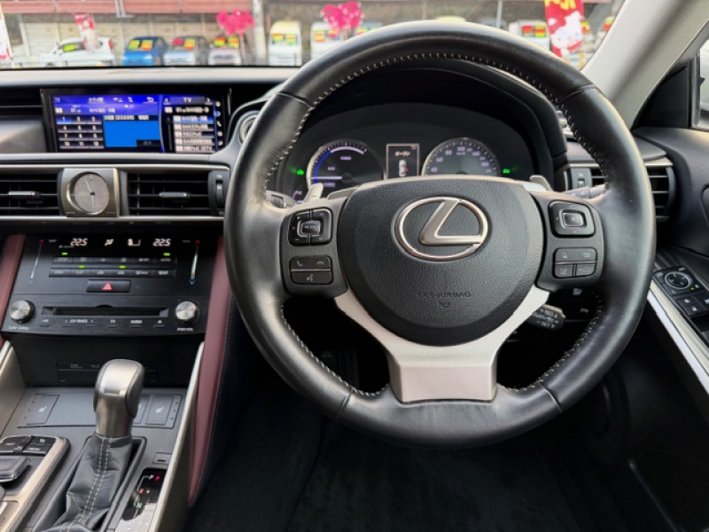レクサス IS 300h OP5年保証対象車 後期型 純正ナビ 純正17インチアルミ ハーフレザー ドラレコ 革巻きステア BSM