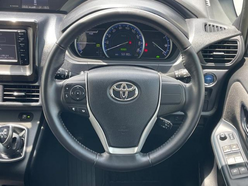 トヨタ ヴォクシー ハイブリッドV 純正SDナビ(CD/DVD/Bluetooth/フルセグ)バックモニター クルーズコントロール シートヒーター 置くだけ充電 ステアリングスイッチ 革巻きステアリング TRC ETC