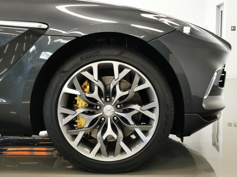 DBXでは23inchのスポーティなオプションホイールが多い中、独創性のあるリボンデザインにダイヤモンドターン仕上げで高級感も加わった、アストンならではの芸術性の高いホイール。そこに合わせるブロンズブレーキキャリパーもまた相性抜群の組み合わせ。