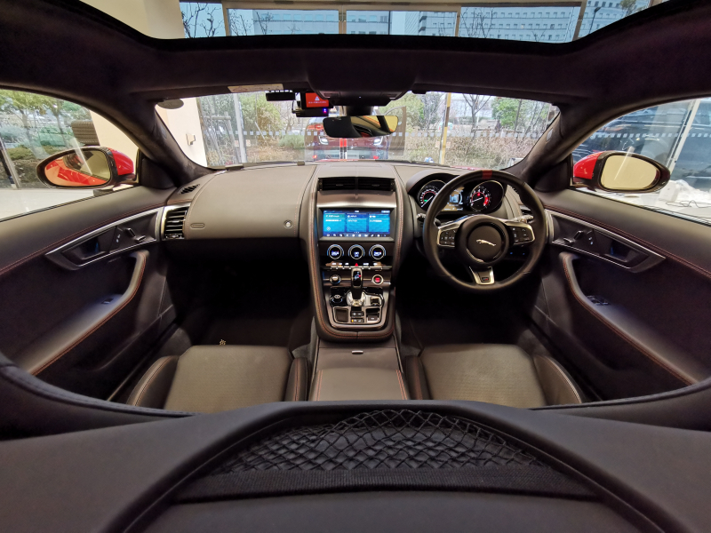 ジャガー Fタイプ チェッカーフラッグエディション 2.0L P300 1オーナー 黒革シート サンルーフ MERIDIANサウンド 20インチアルミホイール クルーズコントロール ステアリングヒーター パドルシフト アクティブエキゾースト 電動調整ステアリングコラム