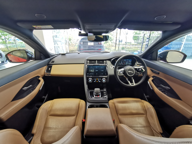 ジャガー E-PACE SE 2.0L P200 AWD 1オーナー 茶革シート フロントシートヒーター インタラクティブドライバーディスプレイ 19インチアルミホイール パワーテールゲート ブラインドスポットモニター メモリーシート パワーテールゲート
