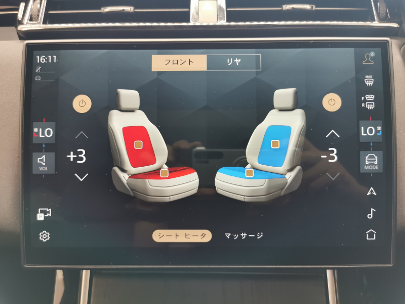 フロントシートにはシートヒーター&クーラーが内蔵されており3段階調節式で御座います。
