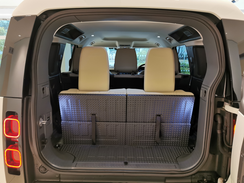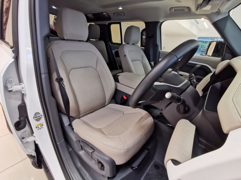 ランドローバー ディフェンダー 110 S 3.0L D300 AWD 1オーナー ベージュ革シート 7人乗り 電子制御エアサスペンション インタラクティブドライバーディスプレイ 19インチアルミホイール フロントフォグランプ ブラックルーフレール